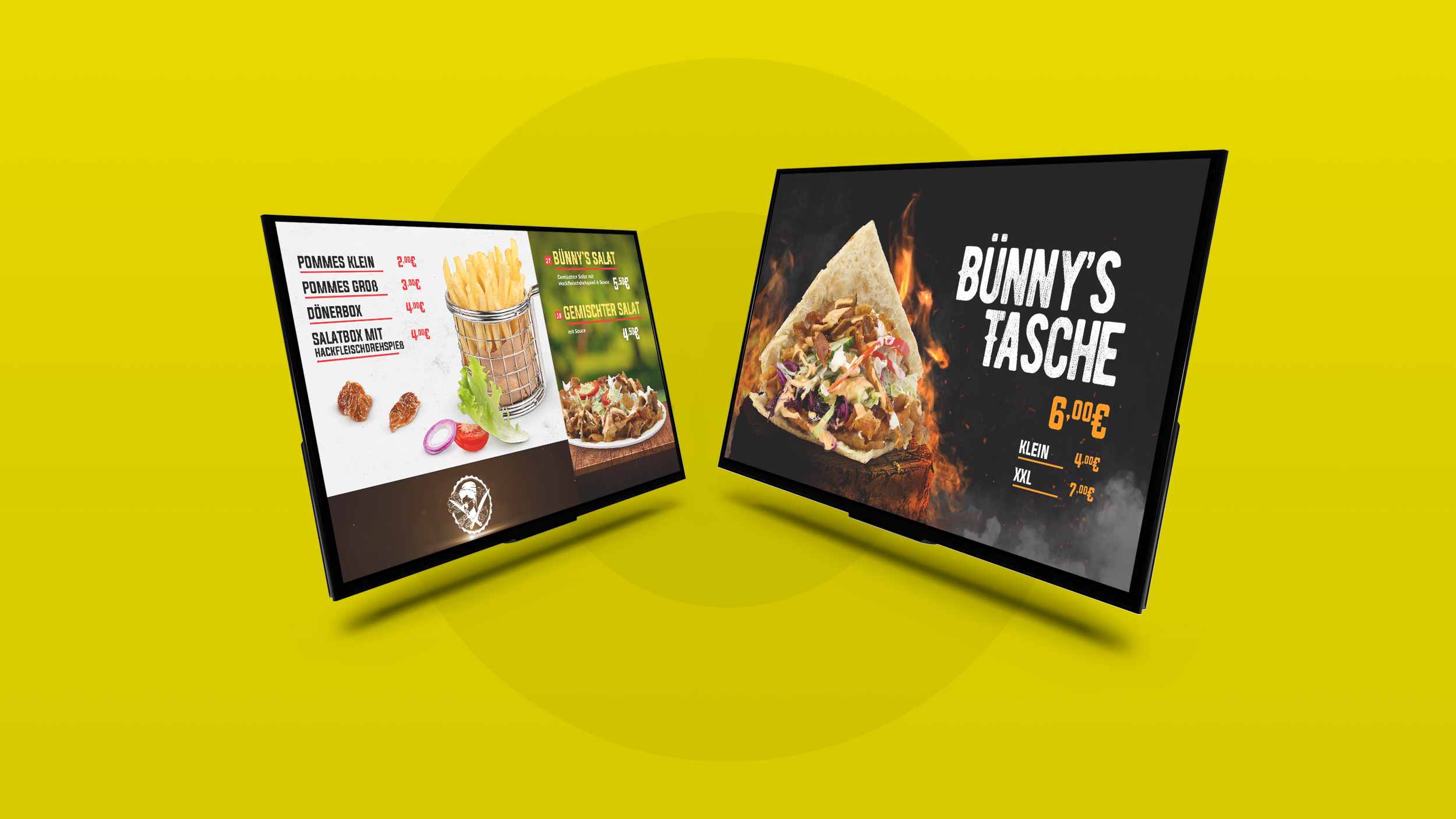 Erleben Sie eine Auswahl unserer fesselnden Inhalte für die digitalen Menüboards im Orient Grill. Unsere animierten Produktfotos und ansprechenden Designelemente sind darauf ausgerichtet, die Aufmerksamkeit der Kunden zu gewinnen und ein interaktives, ansprechendes Erlebnis zu schaffen. Entdecken Sie die vielfältigen Möglichkeiten unserer digitalen Menüboards!